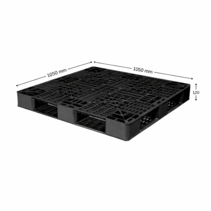 4 Way Black Plastic Export Pallet 2000 Kg Load Capacity | Heavy Duty Shipping Pallet | 1050×1050×125 mm
